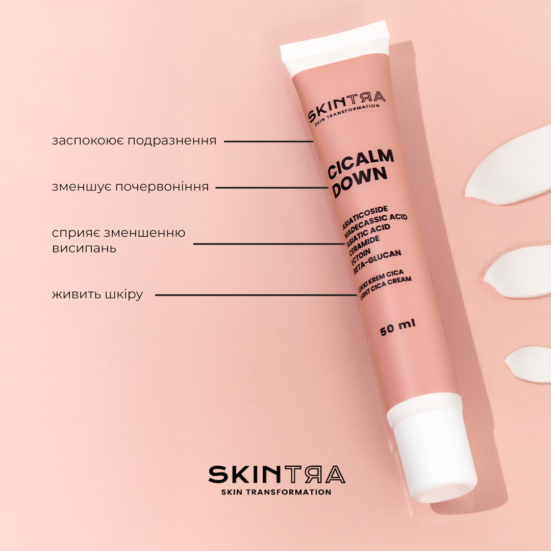 - азіатикозид, мадекасова кислота, азіатикова кислота – мають заспокійливу дію, захищають від руйнування колагену, підтримують процеси відновлення шкіри, регенерують, зменшують почервоніння,