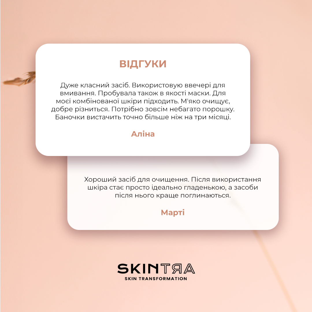 Рекомендую використовувати SkinTra - Pink Pow(d)er 1-2 рази на тиждень. Якщо шкіра добре реагуватиме на засіб, можна поступово збільшувати частоту застосування, враховуючи індивідуальні потреби шкіри.