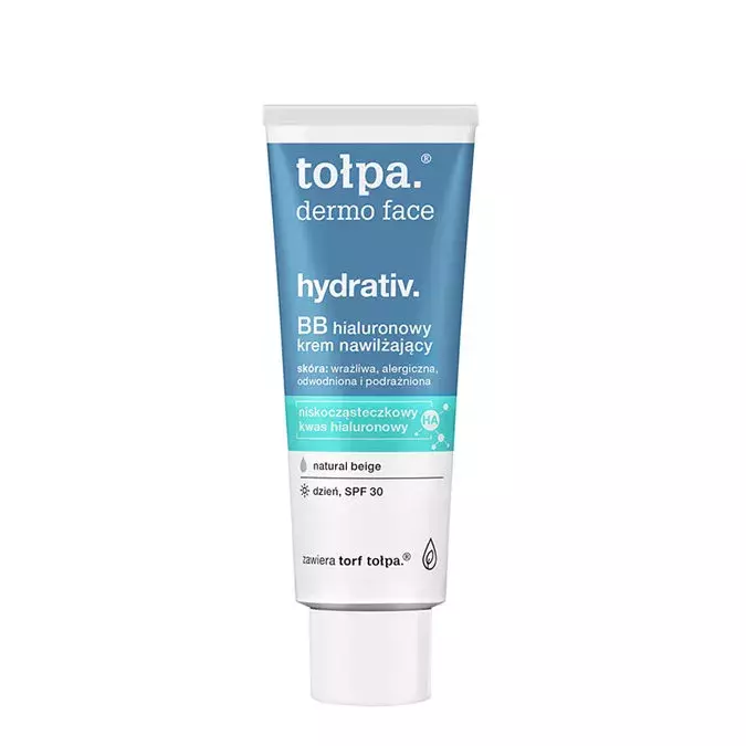 Tołpa - Зволожуючий крем із гіалуроновою кислотою SPF30 - денний крем із хімічними фільтрами, що забезпечує захист від випромінювання UVA та UVB зі значенням SPF30. Гіалуронова кислота забезпечує необхідне зволоження шкіри та підвищує її еластичність. Екстракт торфу з вітаміном Е мають антиоксидантну дію та захищають шкіру від шкідливого впливу вільних радикалів.