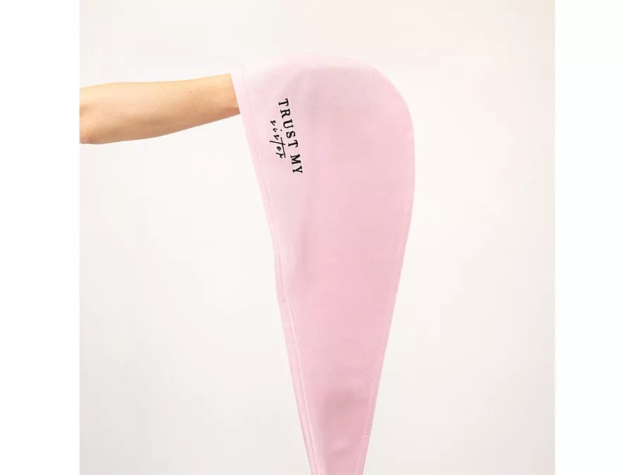 Trust My Sister - Bawełniany Ręcznik do Włosów - м'який бавовняний рушник для волосся. Завдяки ніжній структурі бавовни він не пошкоджує волосся і не електризує його, не викликає сплутування і посічення кінчиків. Рушник має форму капюшона, що дозволяє легко надягати його на голову. Можна використовувати для сушіння волосся, при нанесенні масок або для укладання кучерявого волосся (дозволяє підкреслити природний завиток).