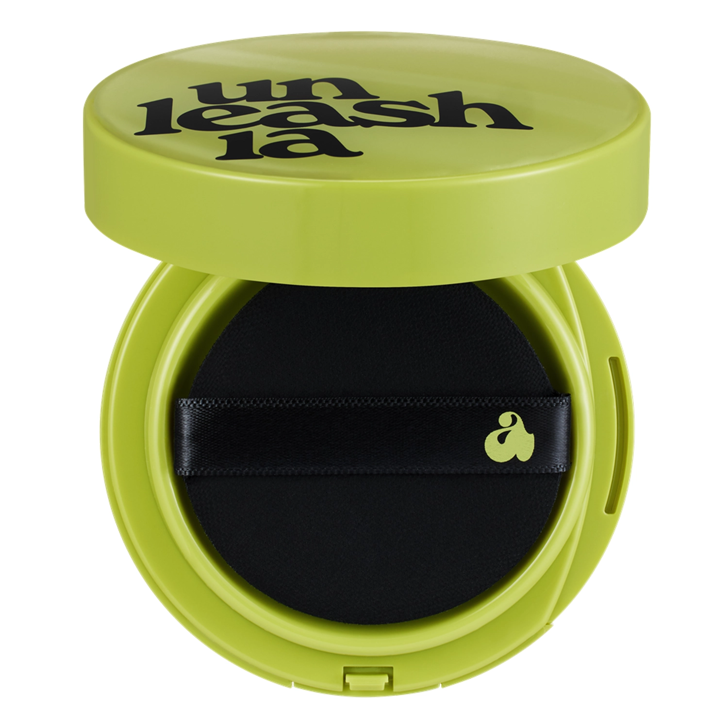 Unleashia - Сатиновий тональний кушон - тональна основа для обличчя в гігієнічній упаковці, яка дозволяє дозувати засіб. Вона має теплий, бежево-персиковий відтінок і залишає на шкірі сатиновий фініш. Продукт дає легке покриття, тому виглядає природно на шкірі обличчя. Завдяки ніацинаміду у складі кушон додатково освітлює шкіру, а бакучиол делікатно розгладжує її. Продукт веганський і виготовлений за принципом less waste.