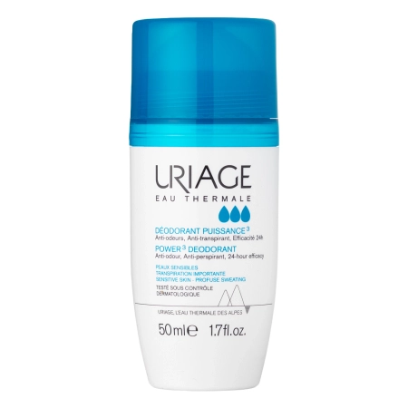 Uriage - Deodorant Puissance - кульковий дезодорант, який ефективно перешкоджає потовиділенню та запобігає появі неприємного запаху. Завдяки вмісту Термальної води Uriage він заспокоює подразнену шкіру. Формула продукту не залишає жовтих слідів на одязі.