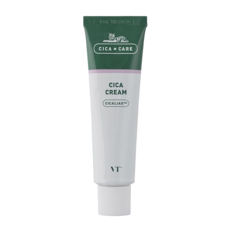 VT Cosmetics - Cica Cream - корейський крем з гелеподібною текстурою. Містить комплекс CICA, що складається з екстракту центелли азіатської та її ізольованих речовин, покращує рівень зволоження шкіри, заспокоює подразнення та запалення. Водночас пантенол прискорює регенерацію епідермісу, а бета-глюкан нейтралізує шкідливий вплив вільних радикалів. Екстракти прополісу та портулаку посилюють заспокійливу та протизапальну дію крему, то як природний міжклітинний цементний елемент, церамід NP, зміцнює гідроліпідний бар'єр шкіри та відновлює його.